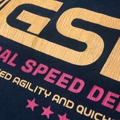 ユニフォームテイストをデザイン。首はタコバインダー仕様で伸びにくく、着心地よく仕上げています!