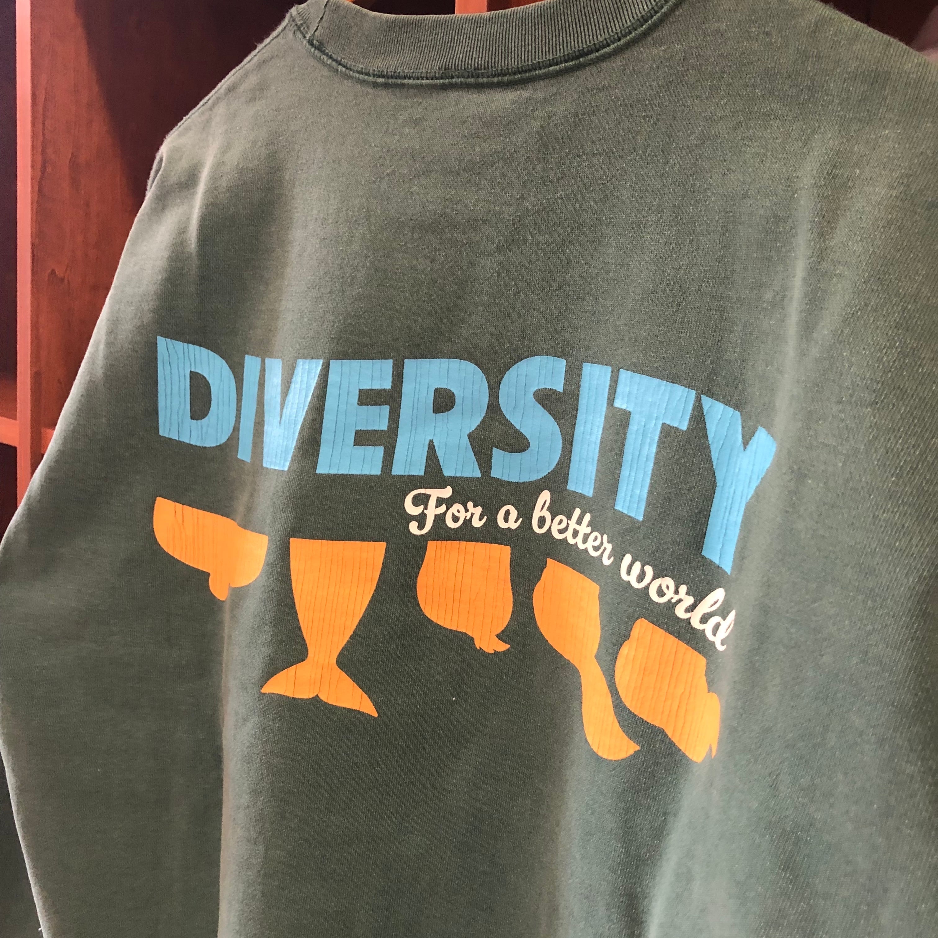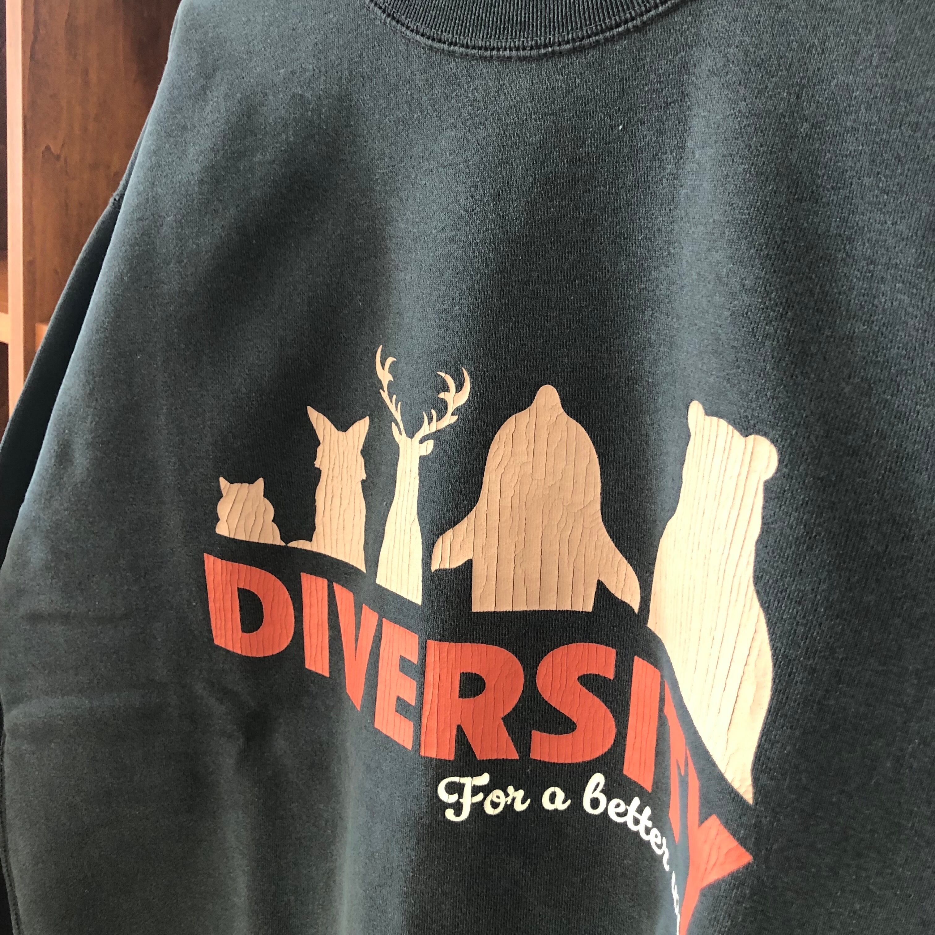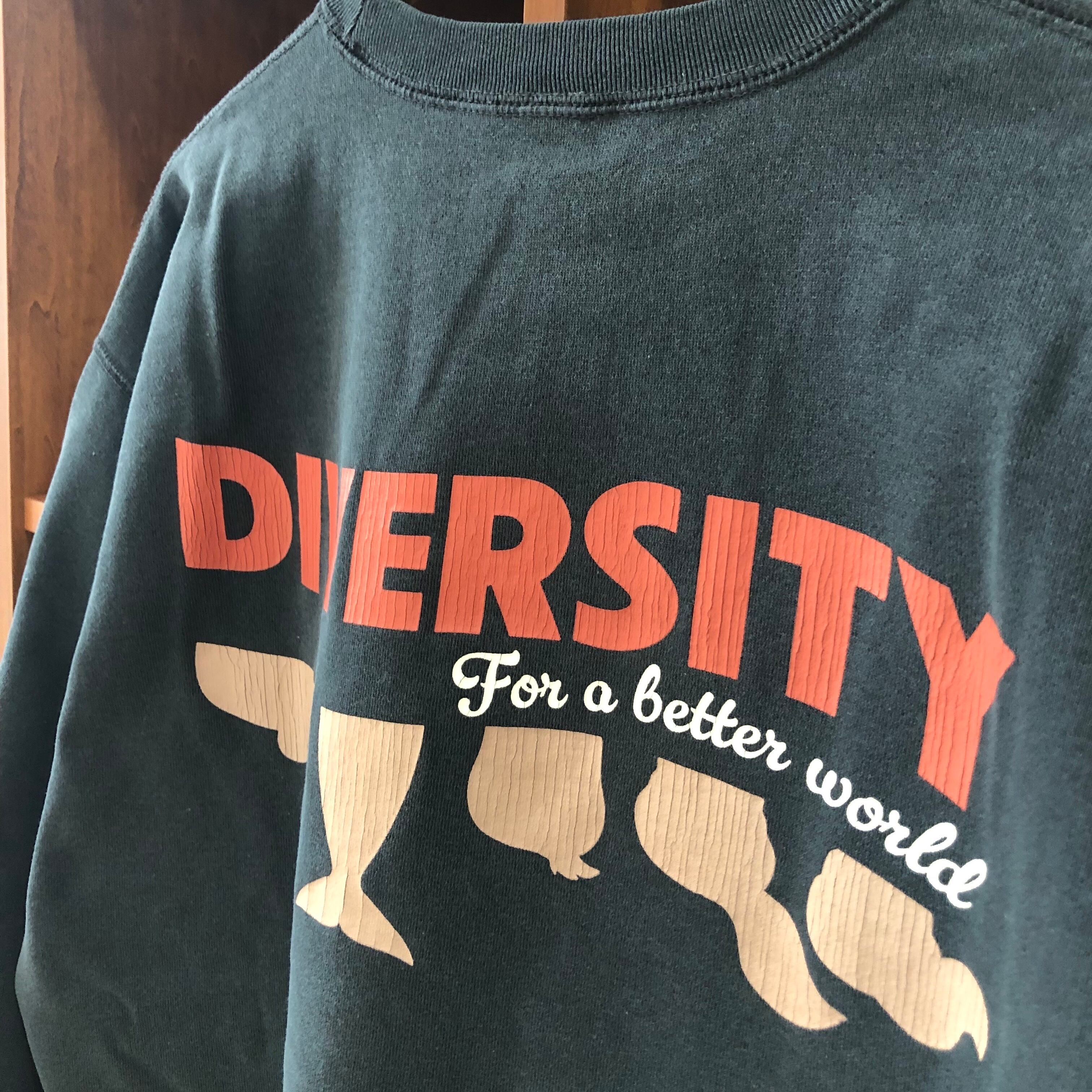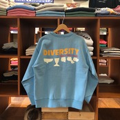 ピグメント染めでヴィンテージ感を再現したクルーネックスウェット。コットン×ポリエステルの裏起毛で軽くて暖かく、ゆったりシルエットで快適。クラックプリントの“DIVERSITY”ロゴがアクセントになり、秋冬のデイリーコーデに使いやすい1着です!