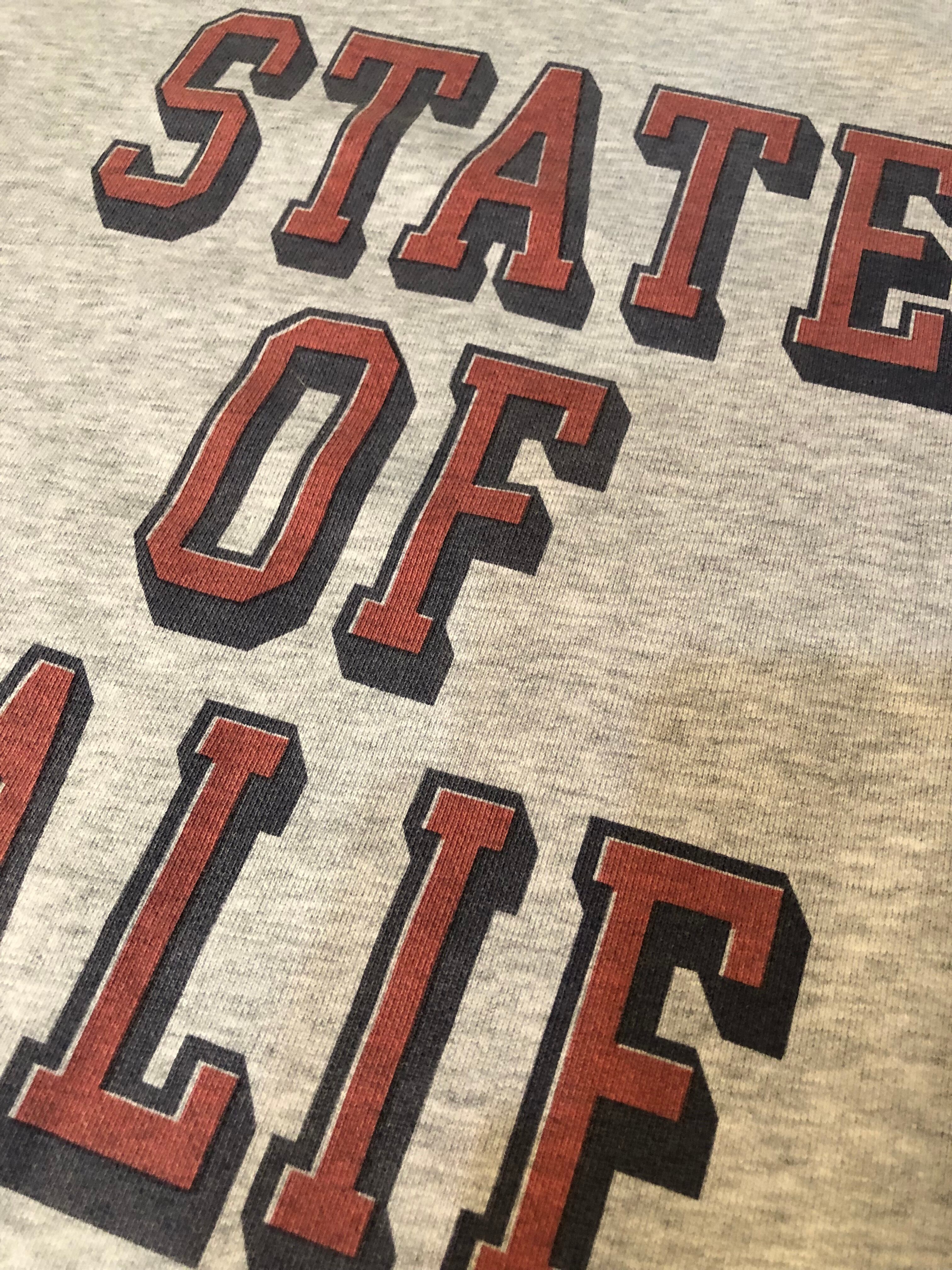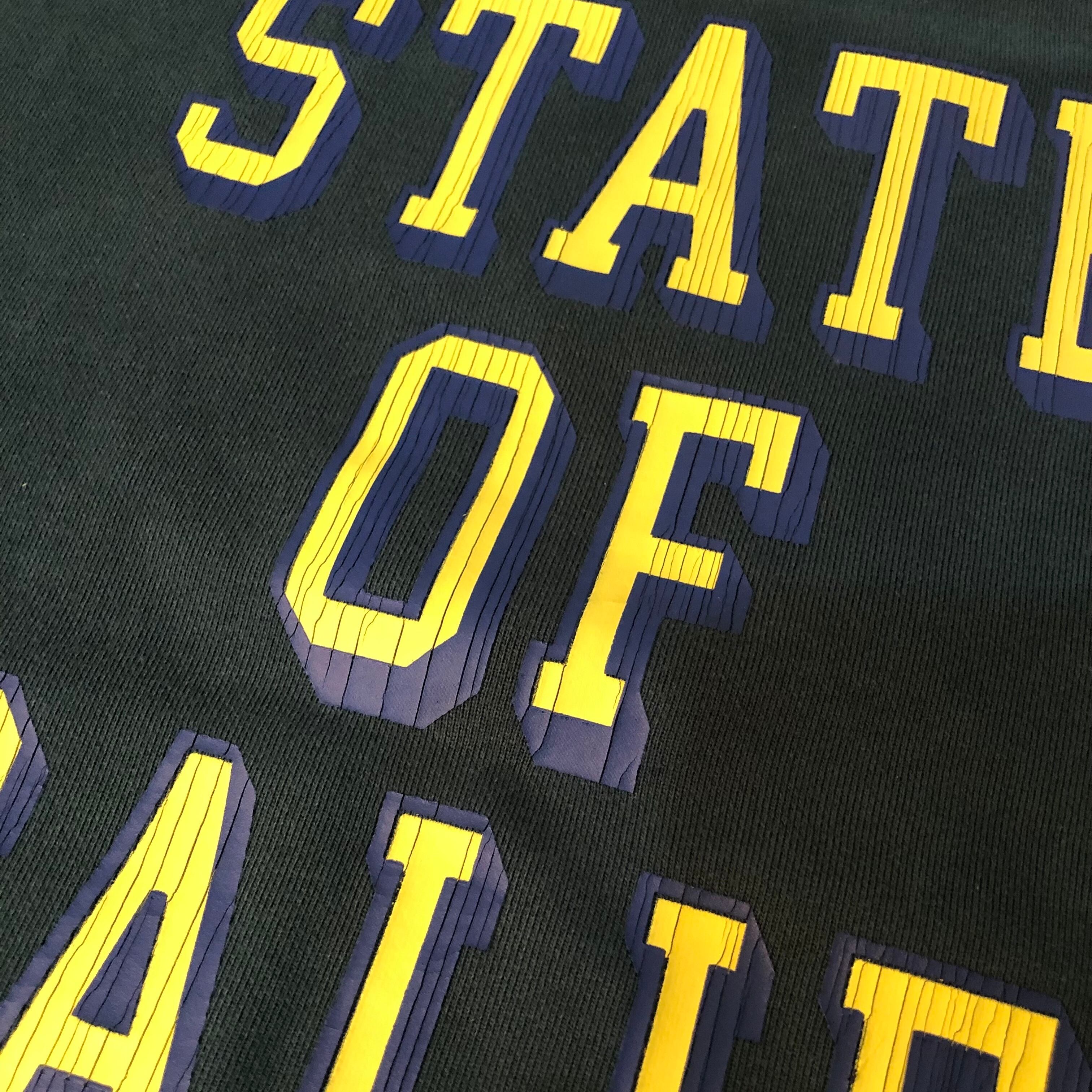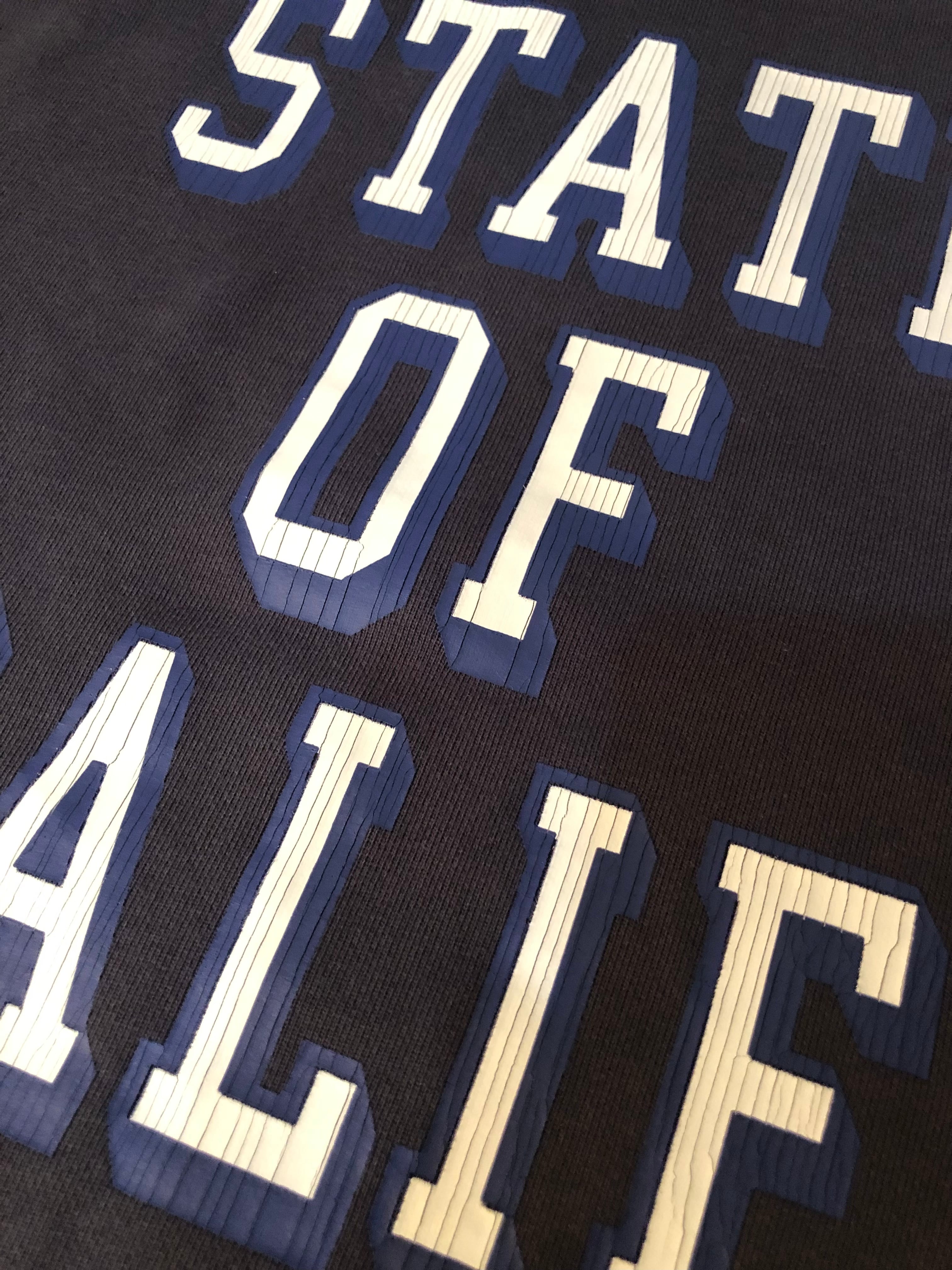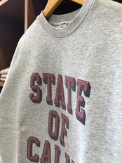 ヴィンテージ感ある「STATE OF CALIF.」プリントと幅広アームホールでゆったりリラックスフィット。