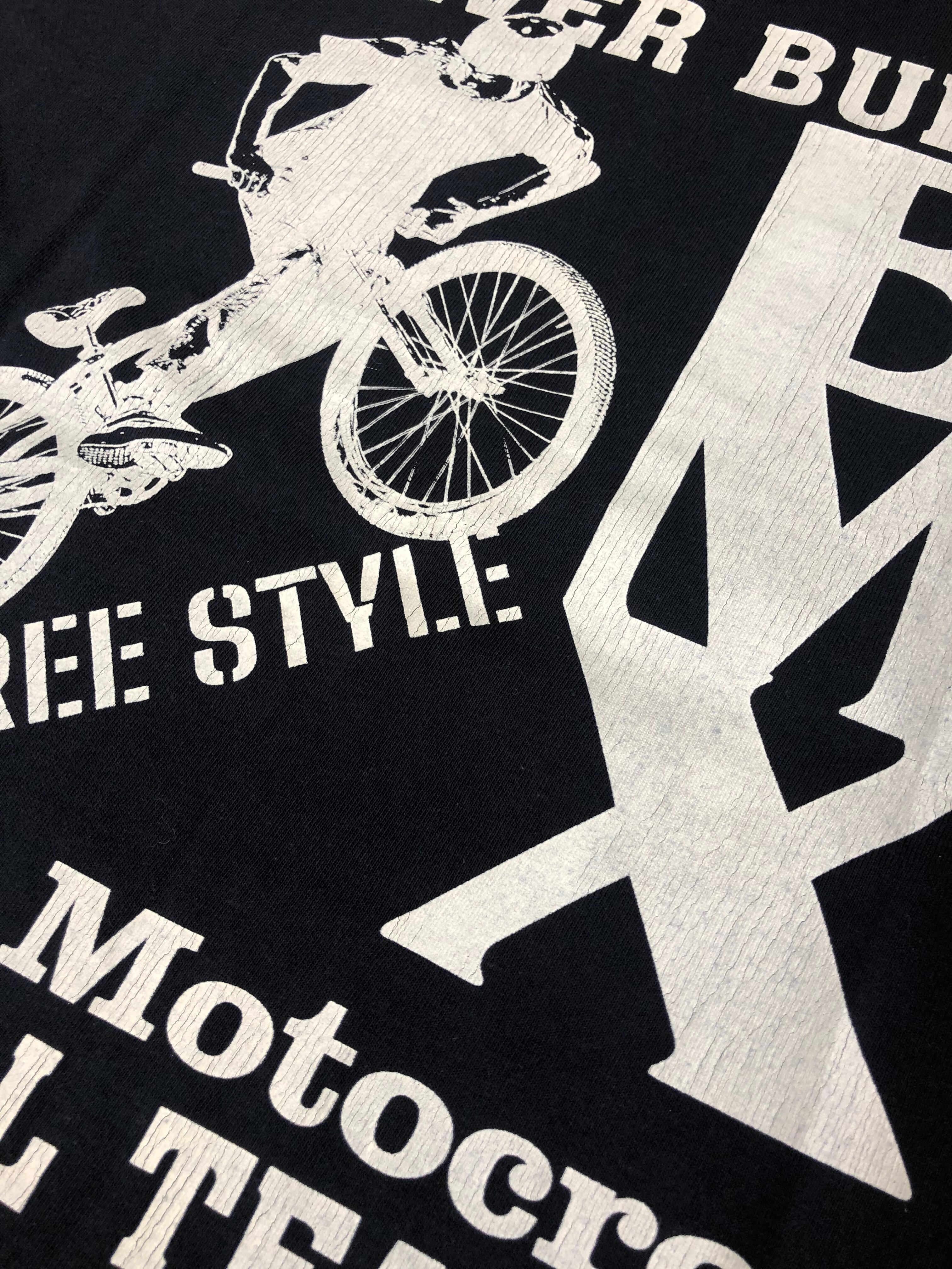 1980〜90年代のストリートカルチャーをイメージした “BMX” プリント がアクセントで、肩幅・身幅にゆとりを持たせたリラックスフィット。