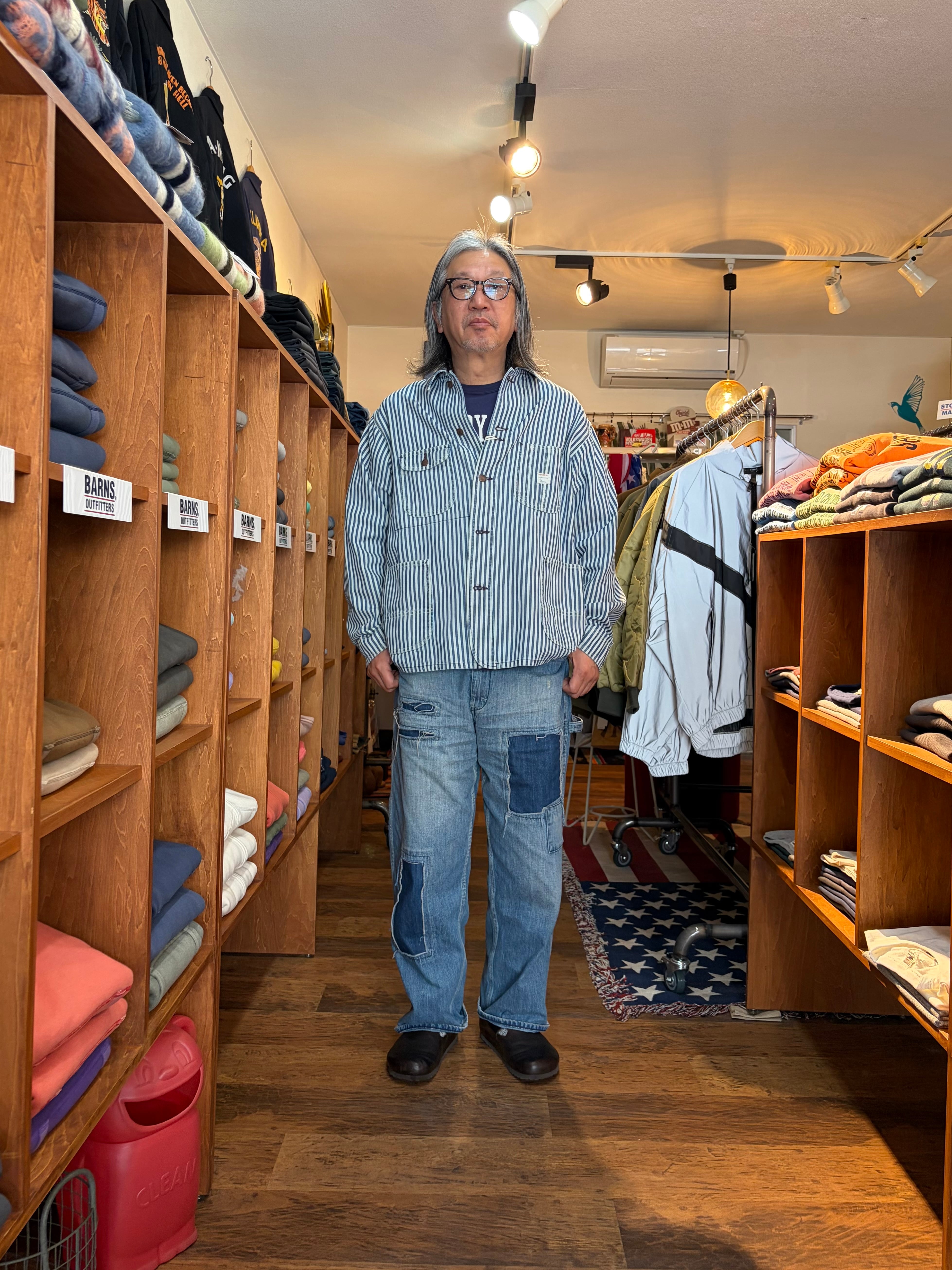 1920〜70年代のヴィンテージワークをベースに、ライトオンスの コットンデニム生地 で仕立てた一着で、使い込むほどに味わい深い色落ちと風合いの変化が楽しめます。