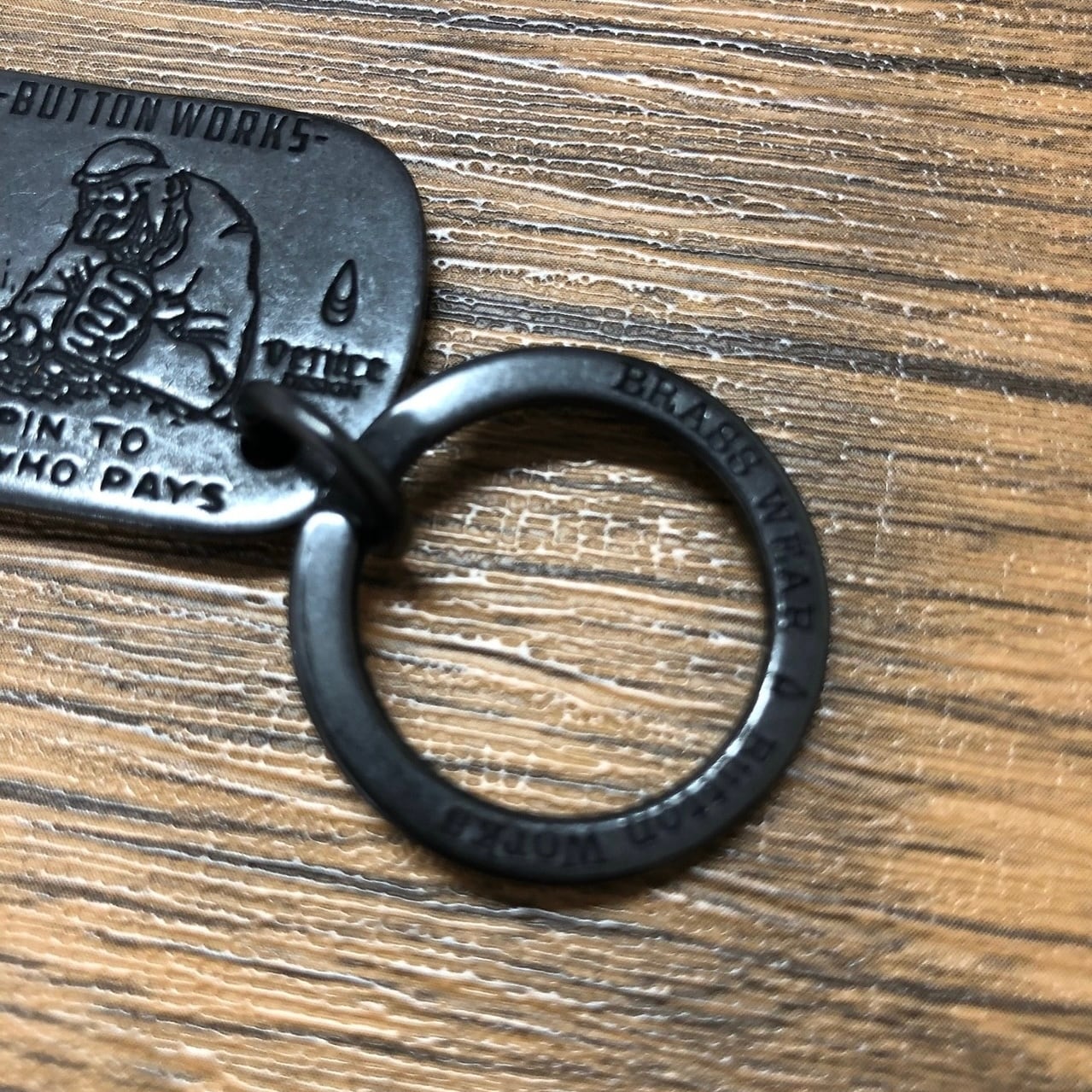 アメリカの飲料メーカーのノベルティを再現した ユニークなキーホルダー&栓抜きアクセサリー。真鍮素材にミルスペック風のダールブラック仕上げを施し、ヴィンテージ感あるデザインとロゴ刻印が魅力です。